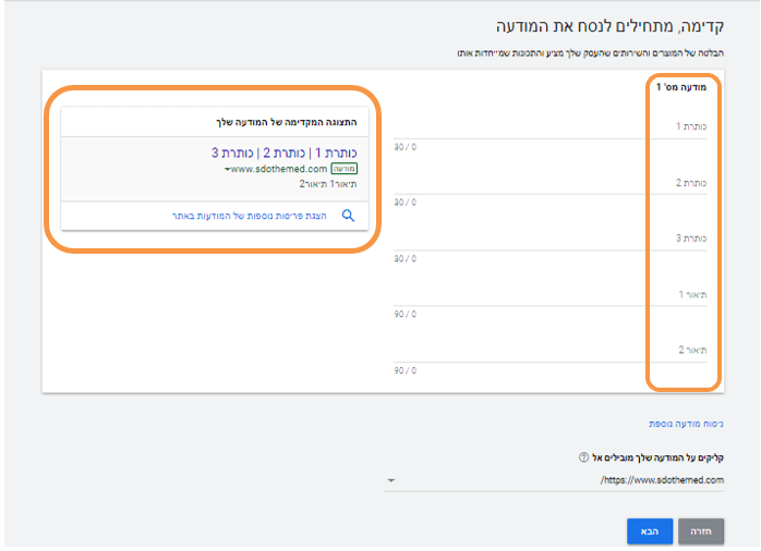 הכוונה לשם העסק המלא שלכם ולכתובת אתר העסק או קישור לדף הנחיתה. המידע שתכתבו יבוא לידי ביטוי בעת יצירת המודעה אשר תוצג ללקוחות שלכם.